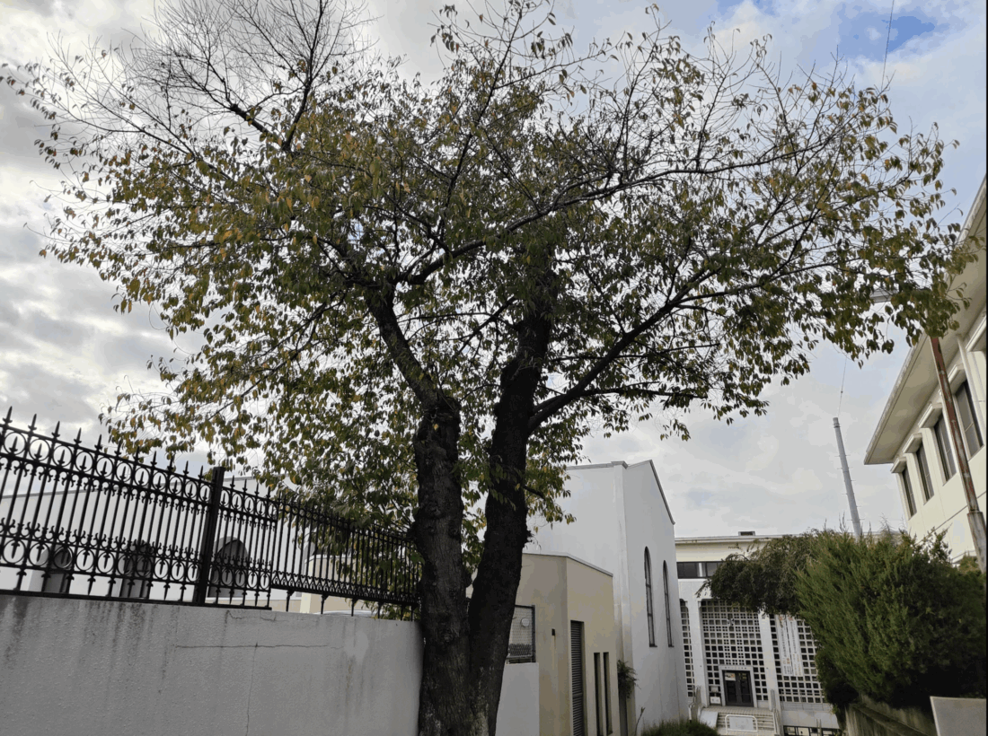 校舎に挟まれたこの小さな空の下にも、確かに“秋”が息づいています。